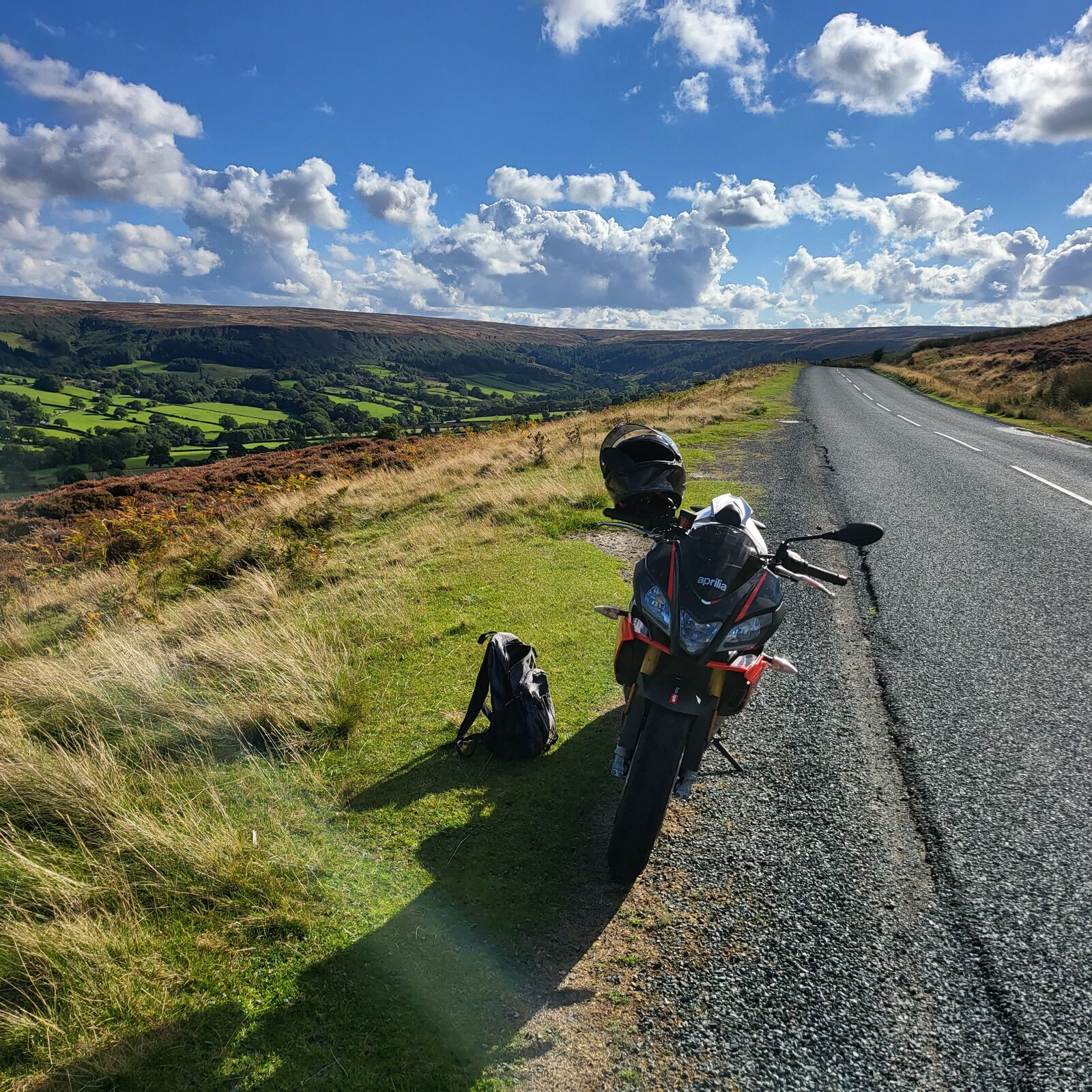 Given the Tuono a damned good thrashing along the Helmsley TT, then dodged the suicidal sheep along the moor tops to Castleton if anyone knows the area.