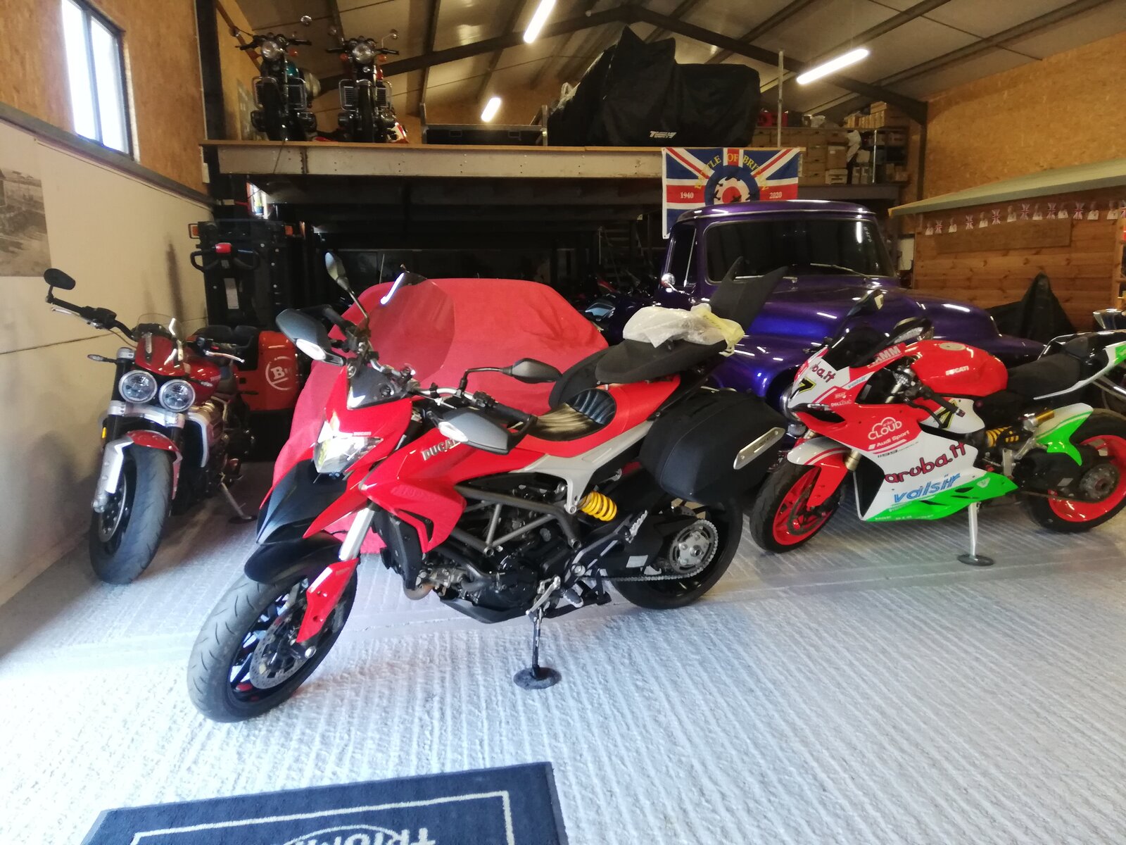 Up early and had the washing pegged out and it was still dark. On the road at 7am with a mate to Aylesbury to pick up his new hyperstrada. A glorious sunny drive, talking nonsense, we were there in no time. Bike is a minter, added bonus as I was pushing it to the van I noticed a cable coming from the left twist grip. Turns out it has ducati heated grips fitted which the dealer didn't realise or my mate so a nice bonus. Reasonable journey back too. Watched the WSBK from Portugal, bit of dinner now feet up in front of the box. Meeting at half eight tomorrow morning for a ride out with his new bike.
