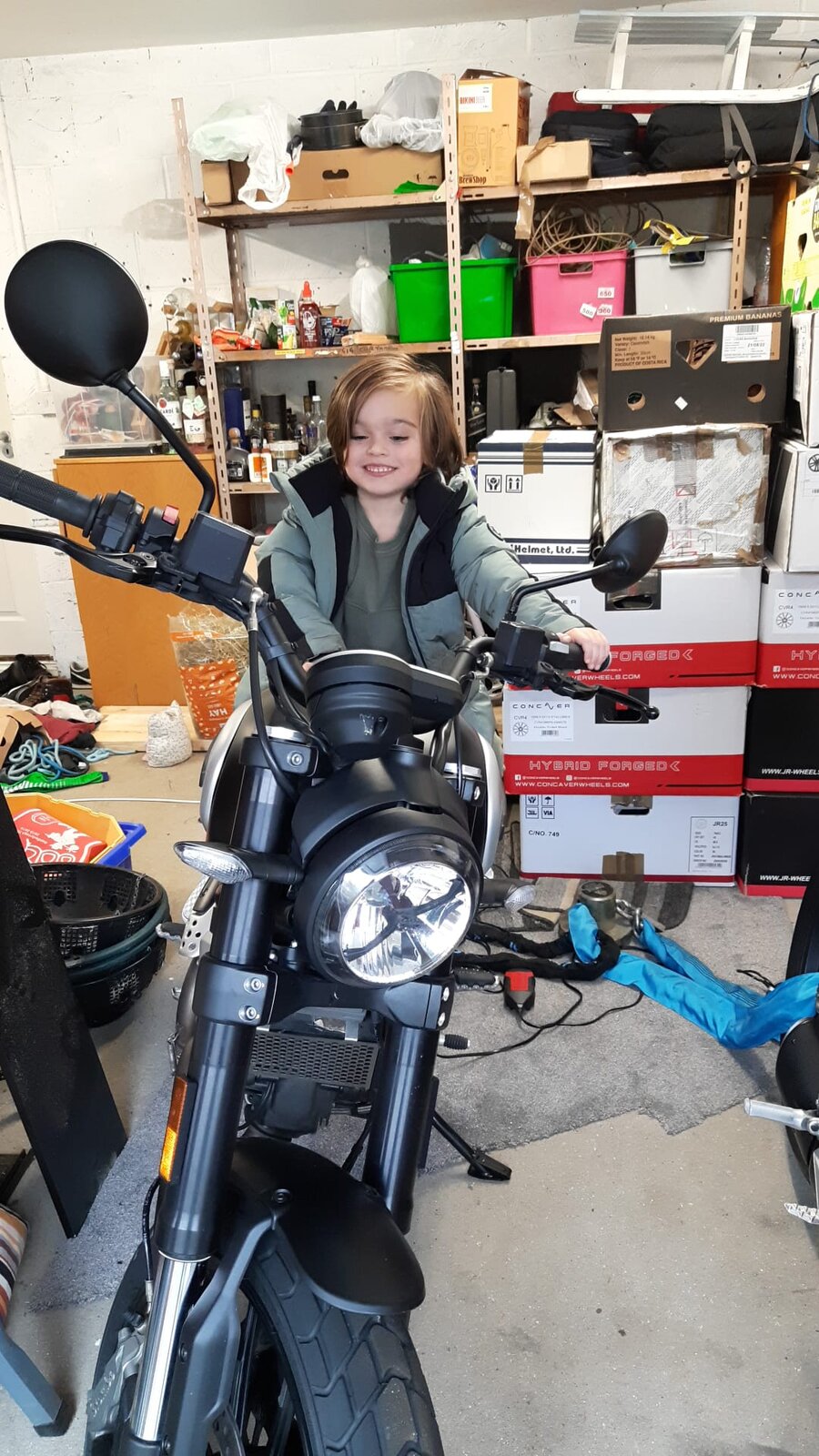 Took my niece’s motorbike mad little boy to see my bikes in storage. He loved it and knew exactly what to do when revving the bikes.