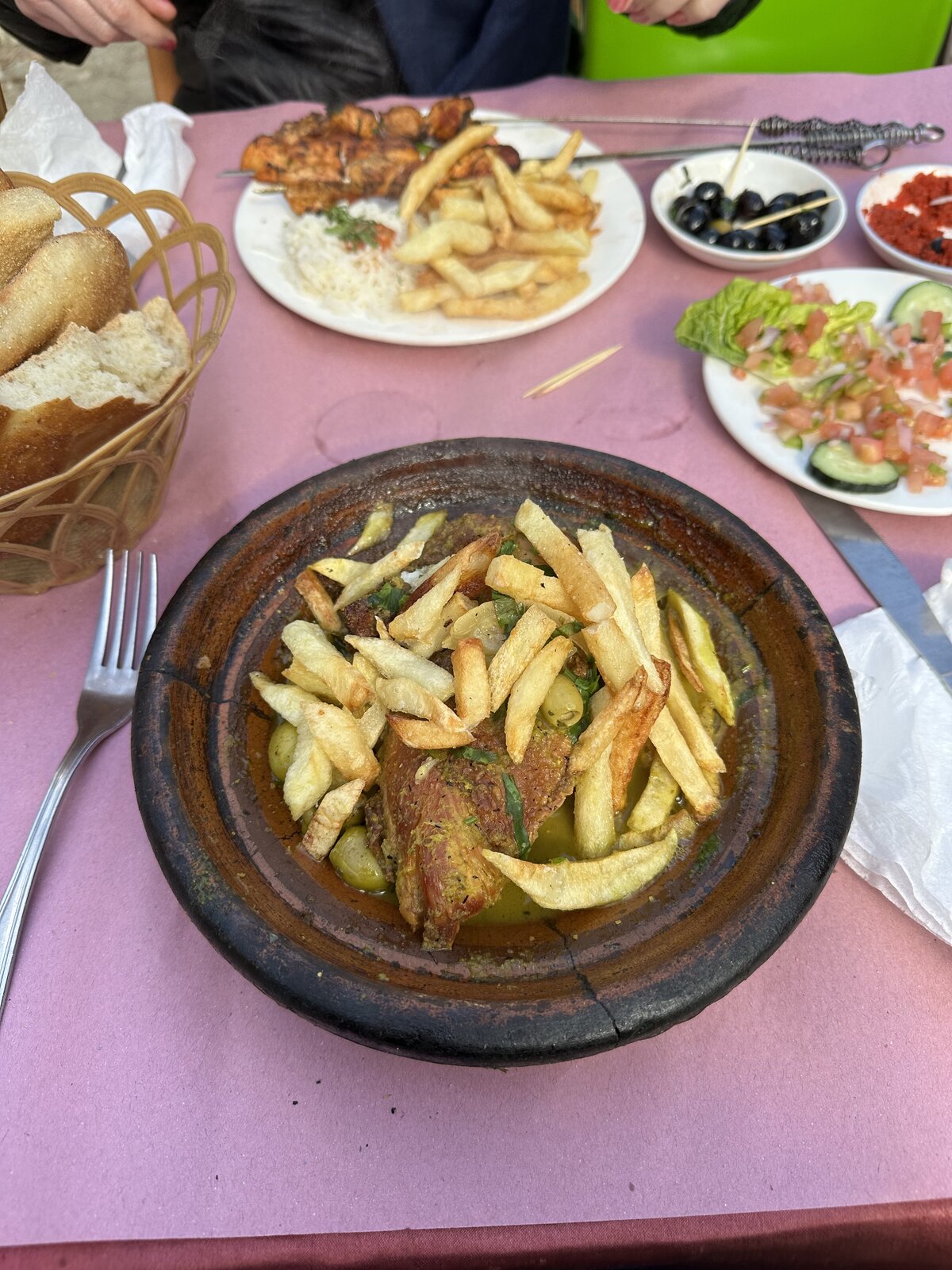 Walked up a mountain. Has a chicken & lemon tagine for lunch. In need of a few libations tonight. Aching like hell, so booked a massage for tomorrow.
