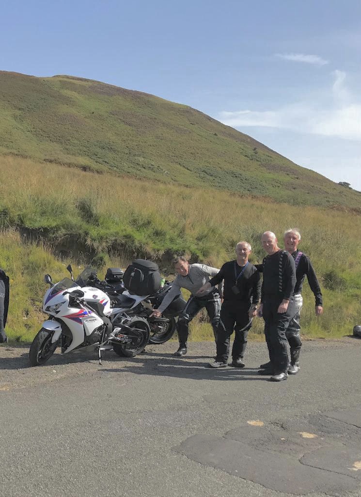 First day of our long weekend in Dumfries and Galloway and today has been boiling hot ! I’m lashing along the road to St Mary’s Loch and suddenly realised I’m on my own…. Has someone binned it behind me ?? Waited a while then turned around to investigate.. All good (relatively!) just the wee man had got a puncture I always sort these out as I’ve got all the gear and a mini compressor After sweating buckets, job sorted, me nearest tyre… So I bollocked the wee man.. ” Can you not get a puncture somewhere in the shade ffs !!” All good and we cracked on, Moffat was really hot when we went through it..28c!! Never expected temperatures like this today, just a sweaty mess by the time we got to the hotel in Newton Stewart, you could have boiled my undies up and made soup out of them !! ! More good roads and sun tomorrow