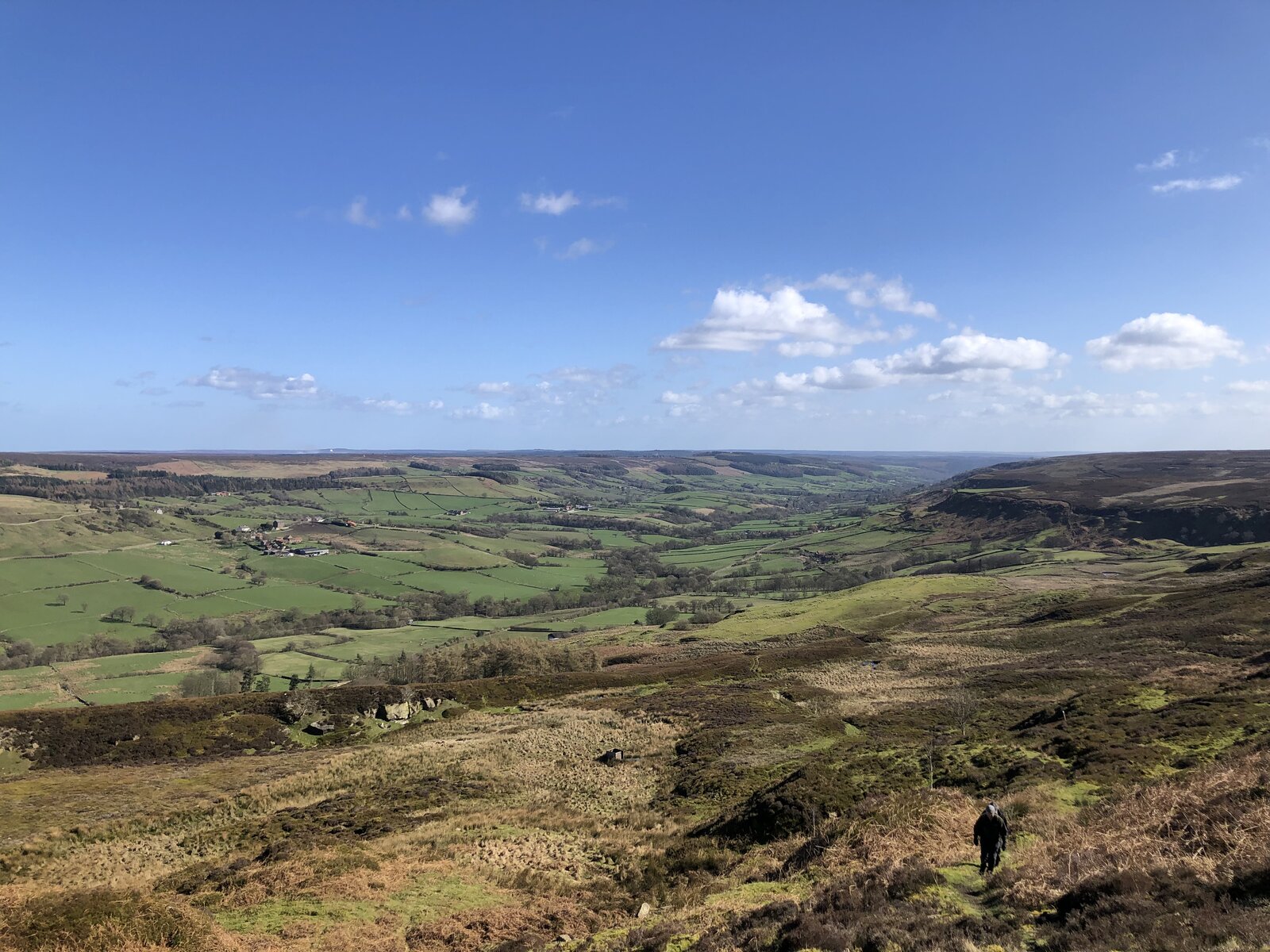 A nice little 8 mile walk around Rosedale yesterday.. Really bright and sunny but a screaming cold wind , my mate Pete and his brother just climbing out of the valley at btm rhs