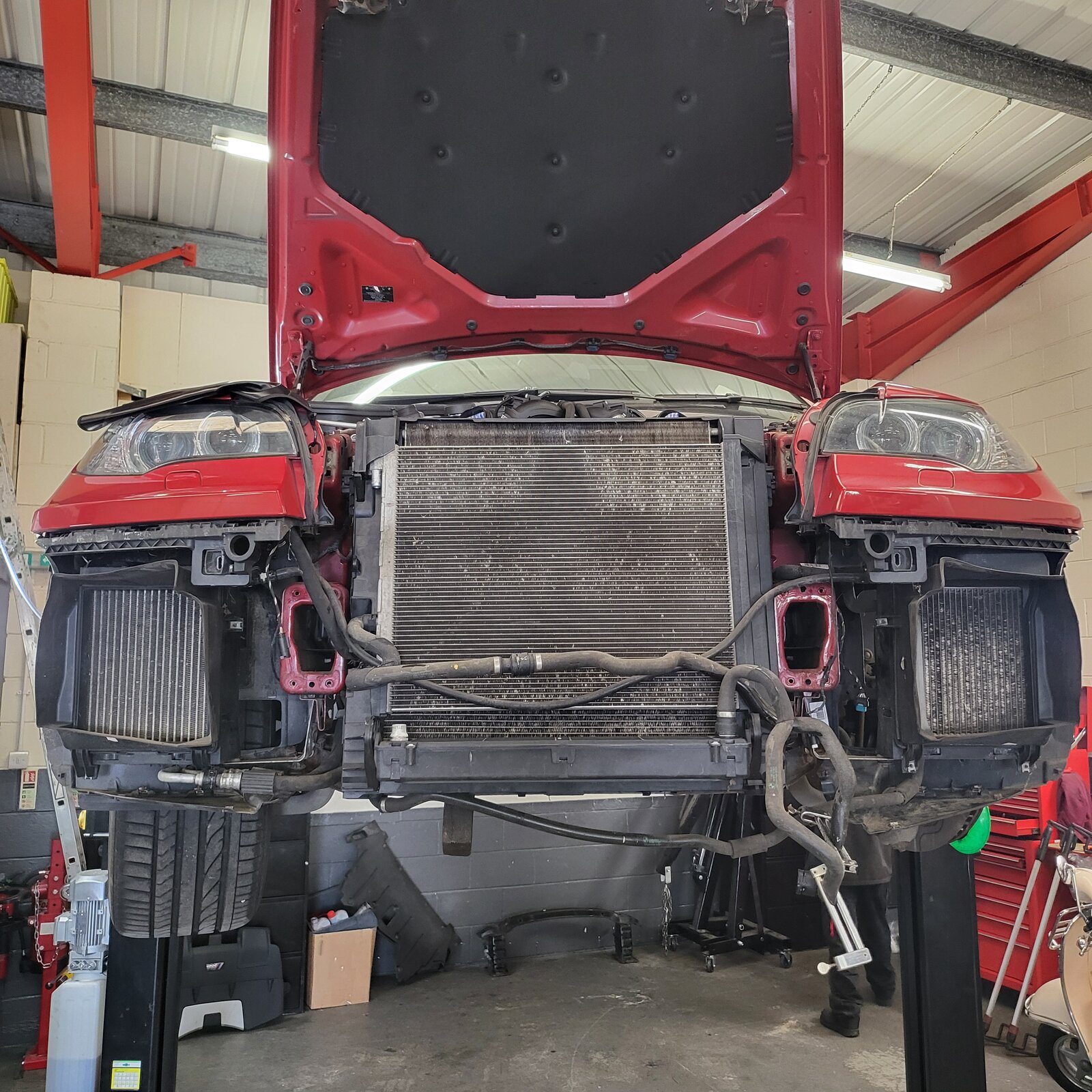 Worked on the myriad of problems on my bmw that a main dealer cant or won't fix. Find they had damaged the high pressure fuel pumps last time they worked on it and never said anything. Changed them now the engine works. Changed the airbags at the rear as the back end used to sag. According to the master tech it was because of damaged ride height sensors. Dear me. And the number of missing and damaged fasteners is incredible and the car has only been worked on by main dealer. Next problem was what they said was a wiring fault turns out to be a damaged charge air cooler pump. Had to remove all of this To get to this Don't be fooled by using a main dealer that they know what they are doing, or even care.