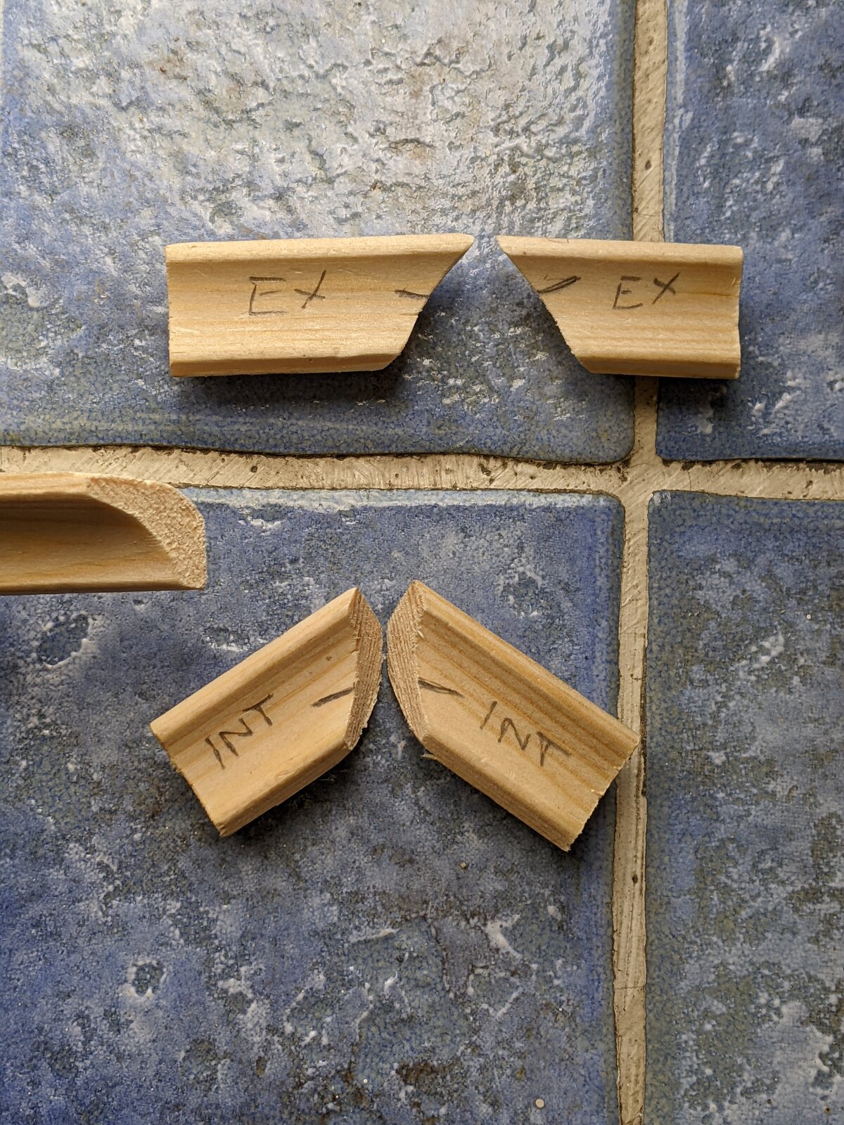 10. Made my head hurt by trying to work out the internal corner angles to cut for beading. After more than a couple of aborted attempts resorted to cutting a couple of templates to copy.