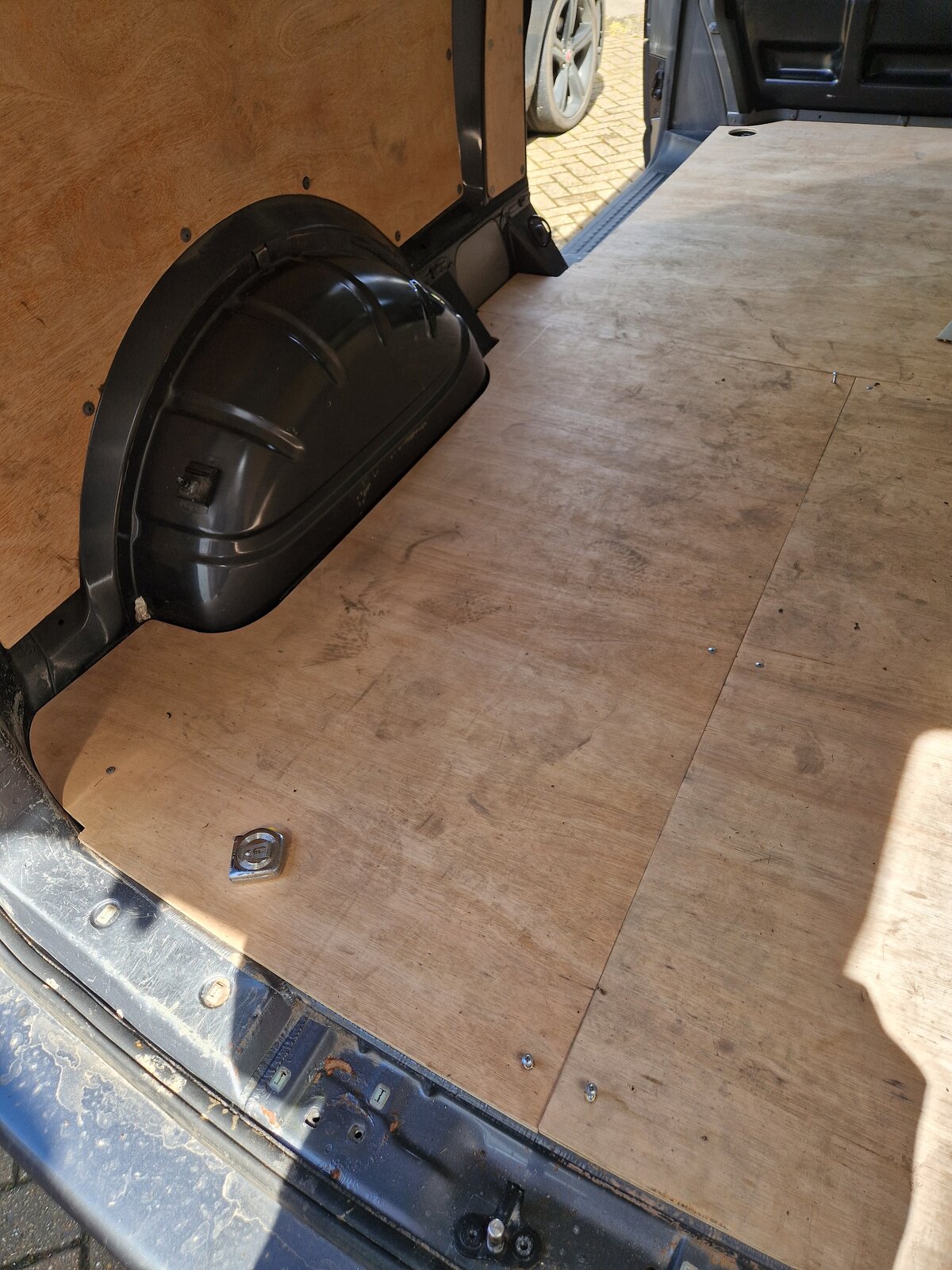 Yesterday, took the plywood floor out of the van, fitted some tie down points, marked and drilled out the holes, refitted the floor, then tested it with bikes