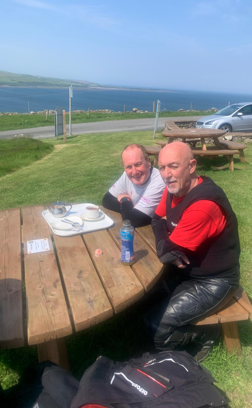 We rode around Dumfries and Galloway too. Did about 175 miles. Can't remember the places we went to but we had lunch in Portpatrick and icecream mid afternoon at a lighthouse at the top of a hill with great views over the sea. Then back at the hotel met this guy (in the background)