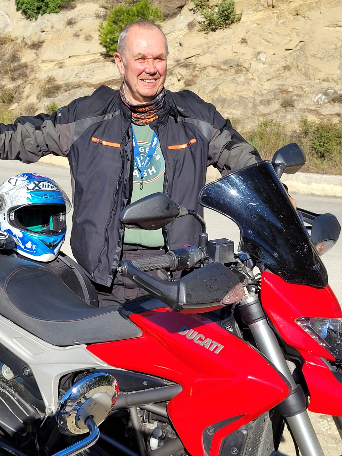 In my eyes he is. He's 77 and recently sold his 765R to slow down, and bought a 900 Bonneville, which soon went and got a 1200 as it was too slow . The pic is of him last year riding his hyperstrada on a month long roadtrip to Romania, Bosnia etc etc .