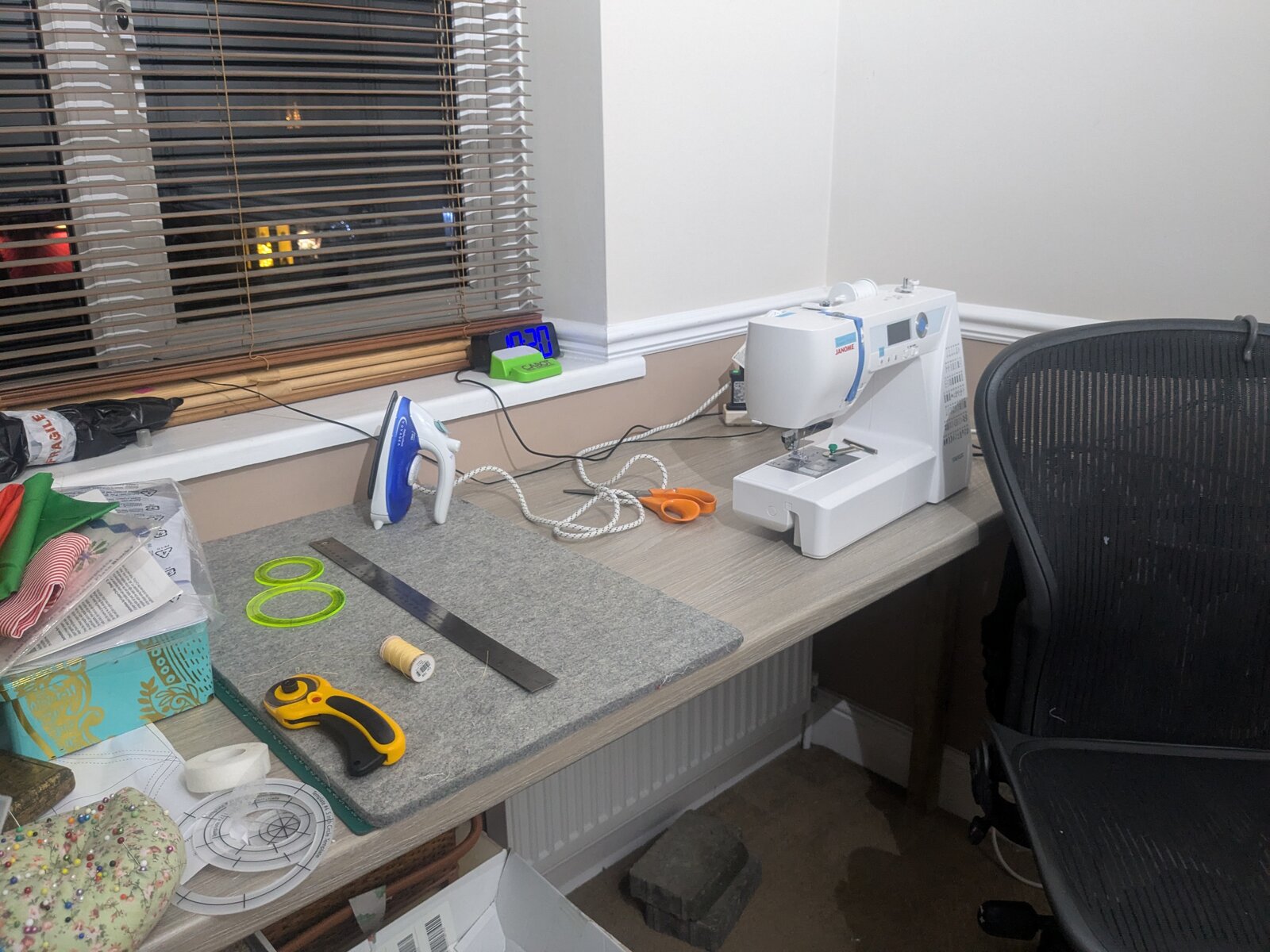 Oh well done, I completely understand the motivation. Lady Nasher does lots of sewing, mainly making costumes for the school productions, but also makes stuff for herself and friends. To be honest I'm a little in awe of what she produces at times, including a couple of Wedding dresses and Prom Dresses for Friends daughters. We have one wall in our spare room piled with those 'Really useful Boxes' full of stuff, but it also completely takes over our dining room and sometimes part of the lounge when she's on a roll with costumes. I wish I could persuade her into the spare room to do it, but she likes to be downstairs where she can open the double doors between the dining room and lounge so she can see the TV and not be on her own upstairs. I'm very used to having bursts of Sewing machine noise in the background, which is only slightly annoying when reading, but on the rare occasion I'm trying to watch something on the TV it can grate a little.