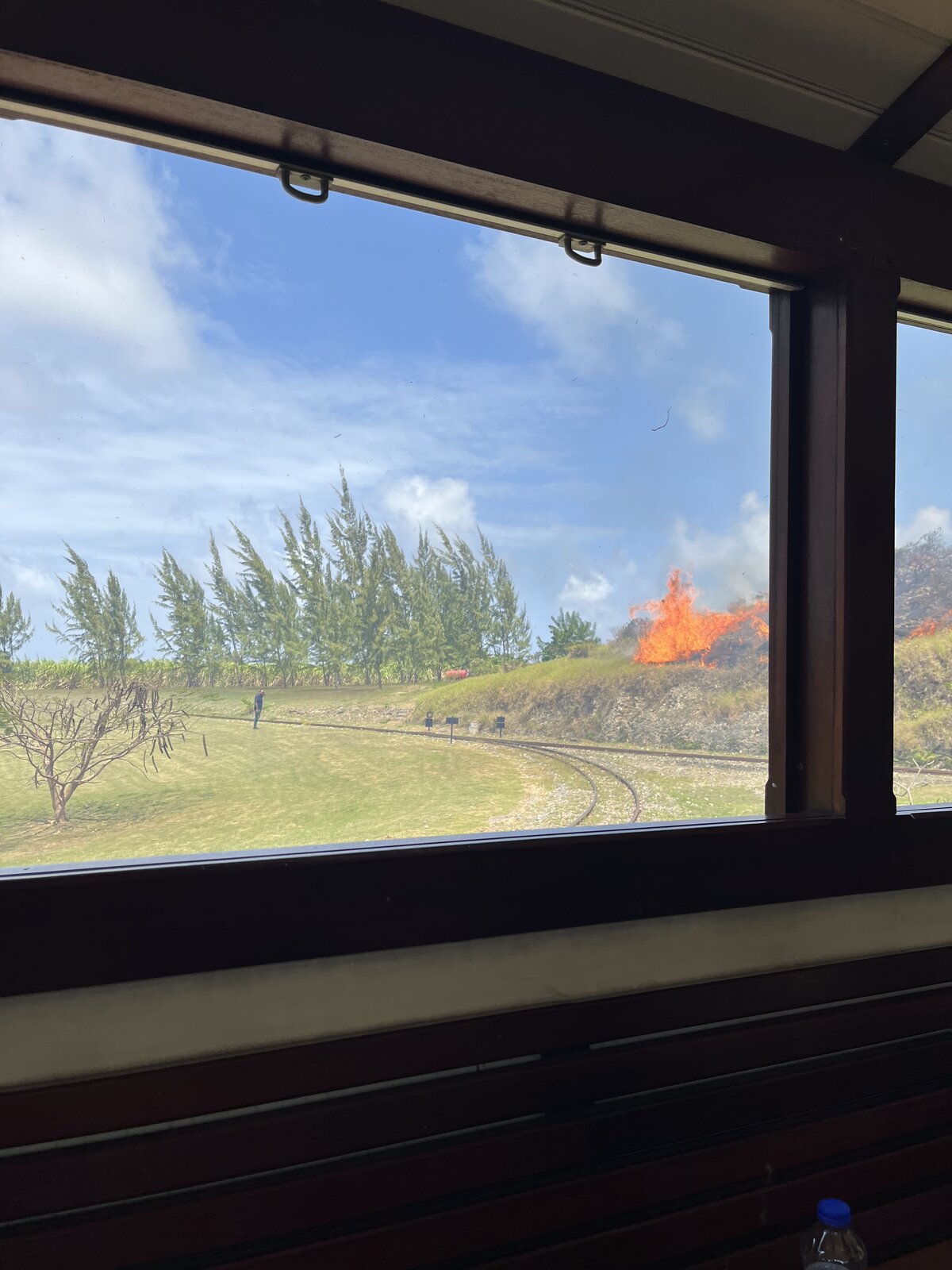 Went on a short steam train ride through the countryside north of the island this morning. This part of the line has only been open for two weeks, so relatively new. As we climbed the hillside the engine gave out loads of hot ashes with burning embers which covered the open carriage at the front. People were flicking burning ash from their hair and clothes, some had burnt through shirts. The journey was cut short and then abandoned when on the return leg we had to pass through this! Went left just before the fire service turned up. Great tip, highly recommend.