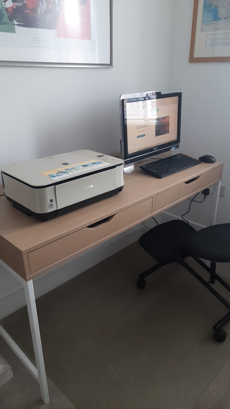 Picked it up at 11am. It was heavy as fuck and I needed help to get it in the car. When I got back I had to unload it by myself as Doris was at hers last night. Got the box in the house then opened it up to get all the components up stairs by myself. The instructions said it was a two man build but I thought I'd have a go myself. It was a little unwieldy to put together but I finally managed it in 3 hours and I have to say it looks OK. It's also made more space available in the Study as it's not as deep as my old desk. I then managed to get the old desk down the stairs by myself and into the garage ready for collection by the British Heart Foundation on Thursday hopefully. I'm fucked now........but hey Doris is coming over in a bit. Too little too late!