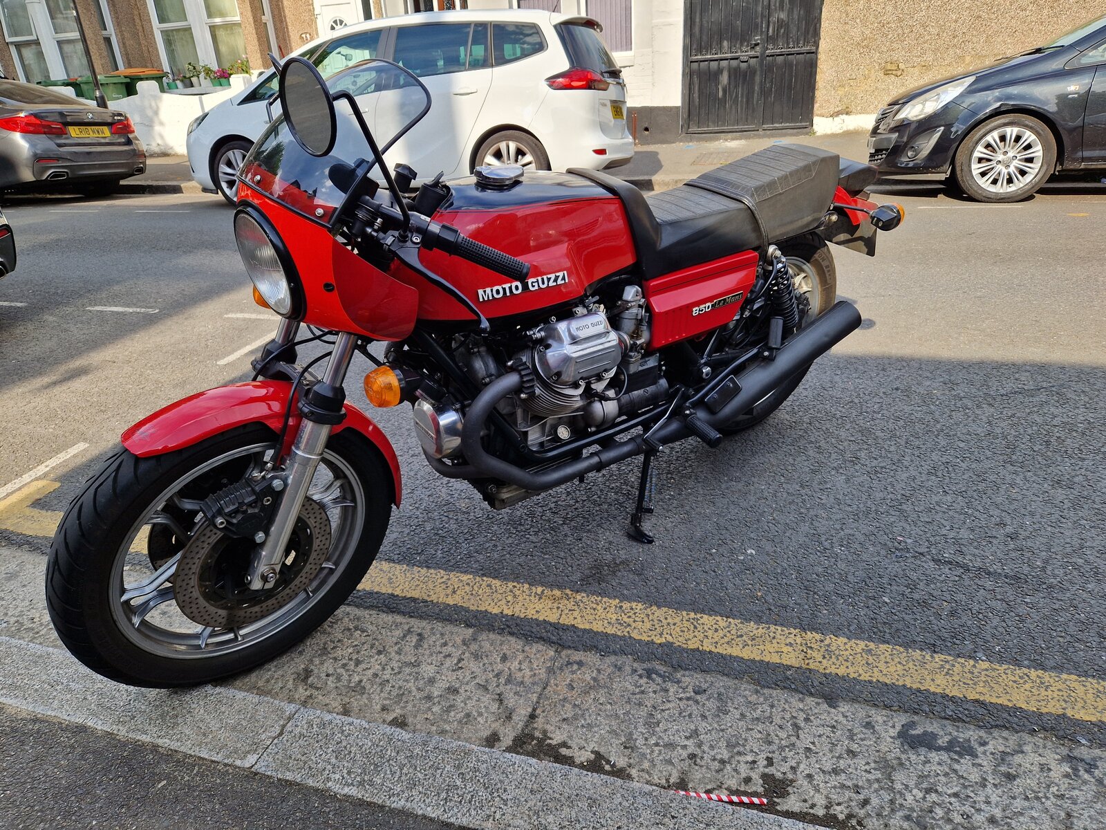 Today I got my Guzzi Le Mans out. Wouldn't start. Two new spark plugs, now starts and runs perfectly. To the petrol station for fuel. Ready for a run out, maybe tomorrow ...
