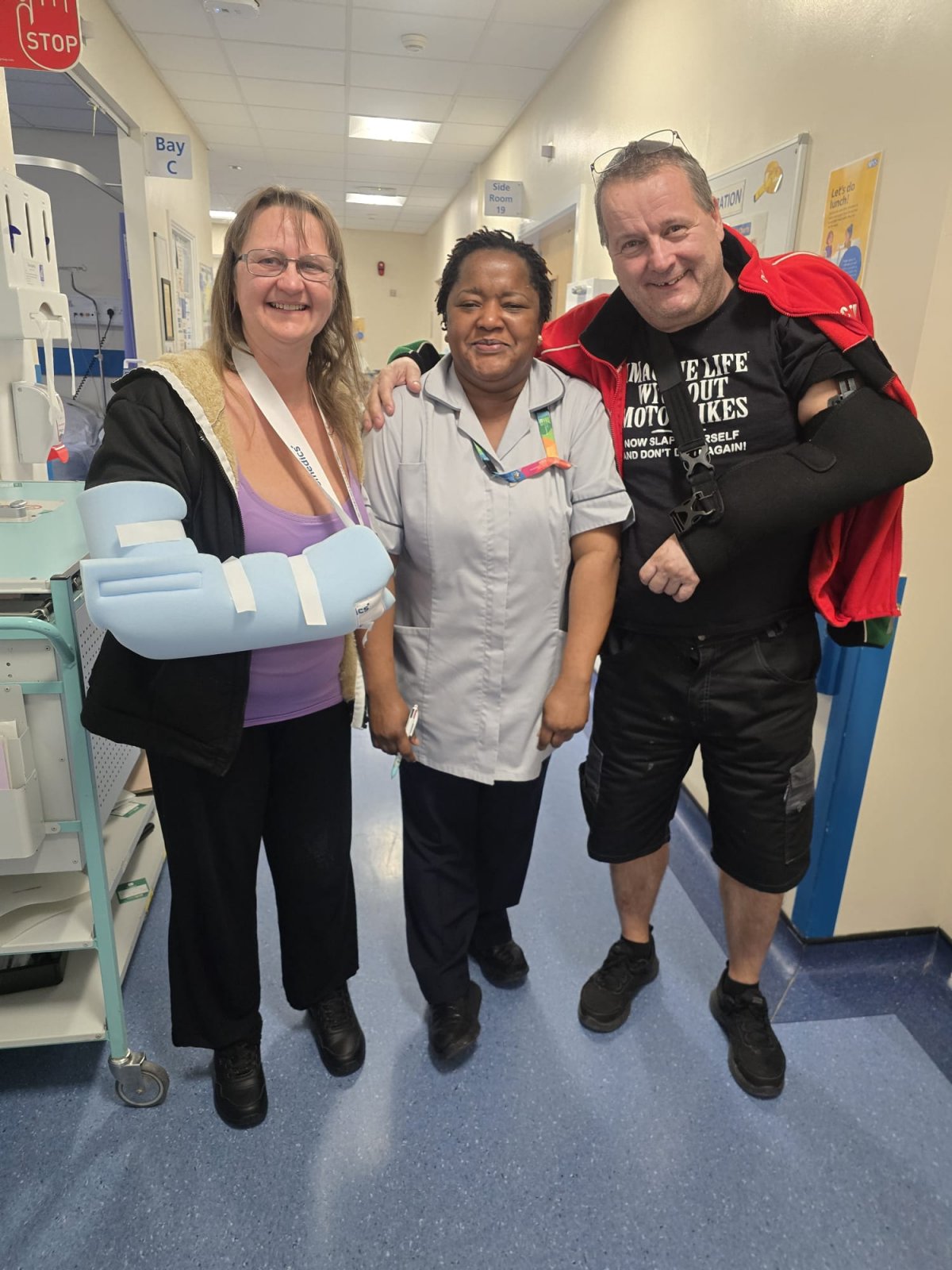 Had my hospital appointment, what a complete fuck around that was Arrived at 12:00 for a 12:20 appointment, at 12:15, nurse announces that there is a 30 minute delay, no problem i thinks, 25 minutes after my appointment time, my name gets called, oh, did nobody tell you, you need an xray today Was told that out patients xray room was not working, so, I had to go to main xray, queued to book in, got booked in, sat there nearly half an hour, was told i should be at out patients xray, I told him I was told to go to main, he said I could either go back to out patients or wait at main, but there may be a delay, the previous person he told to return to out patients then arrived back at main for her xrays A few minutes later, a nurse came along and shouted out some names, asked me my name, she checked the system, then took some of us back to out patients Had xrays taken, nurse asked me to put my elbow in some specific positions, politely told her it wasn't happening Eventually got around to seeing the consultant, next appointment is in 3 weeks, physio starts on Friday On a couple of positive notes, the brace is now off, so I can start to try and move my elbow and wrist, and the other is, I can now get my jacket on properly