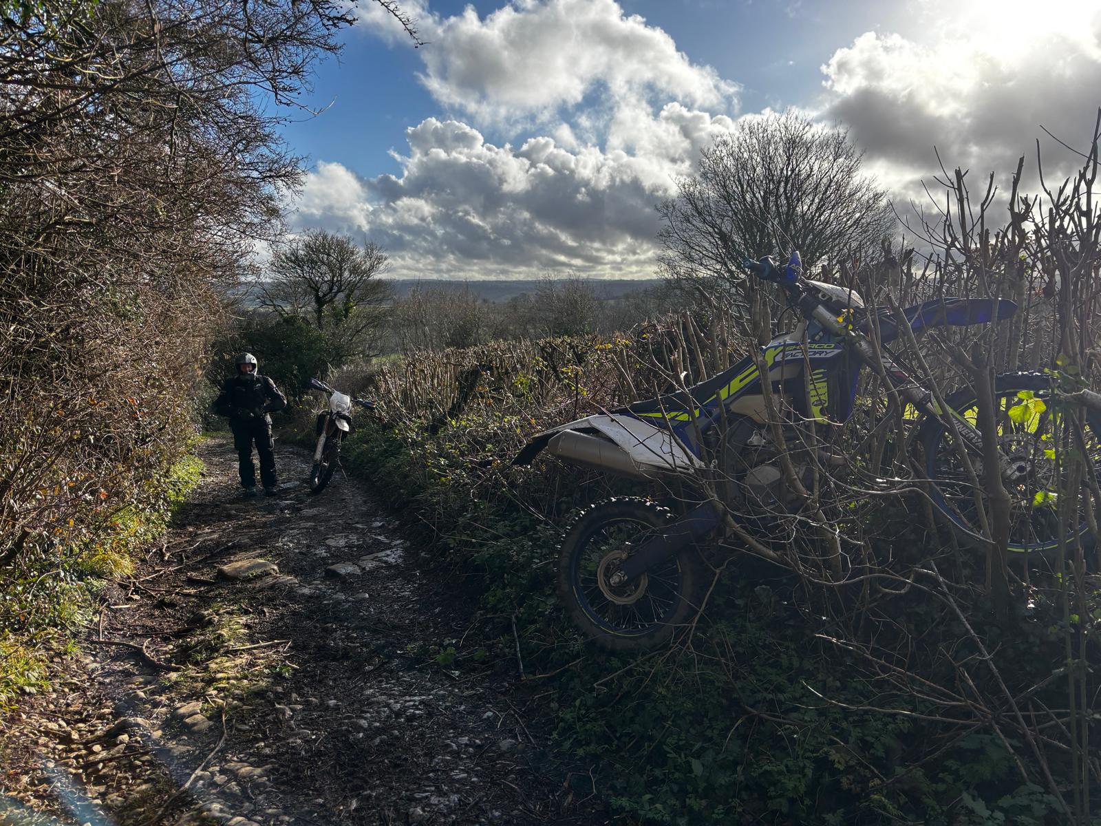 I just had to share this. My mate, who can ride an off-road bike better than anyone I know, managed to launch himself into a hedge yesterday I couldn't get my phone out quickly enough when he was still on it, especially as I was pissing myself laughing. Hey-ho, another good day out on/off road on the Shercos south of Bath...