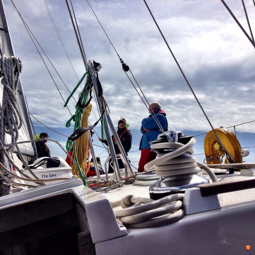 Who, the three people standing around with arms crossed watching the scenery? Very tiring indeed!! Looks good weather for sailing though.