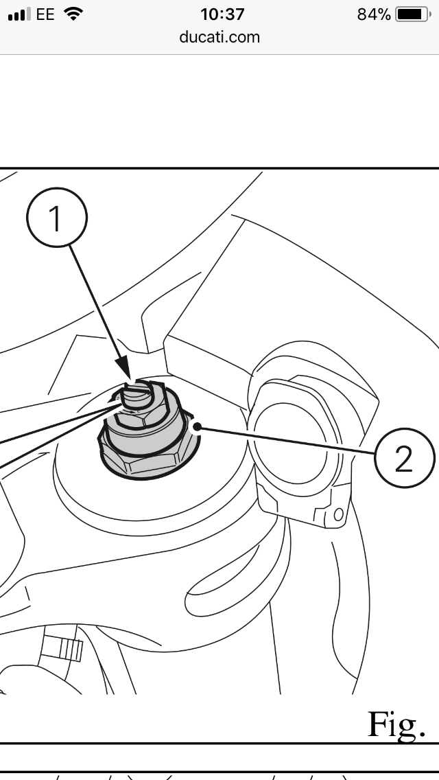 The manual says to use a 22mm socket on the larger nut at the top of the suspension. Labelled 2. Surely it’s the smaller nut on the top of the fork, just under 1? For pre load?