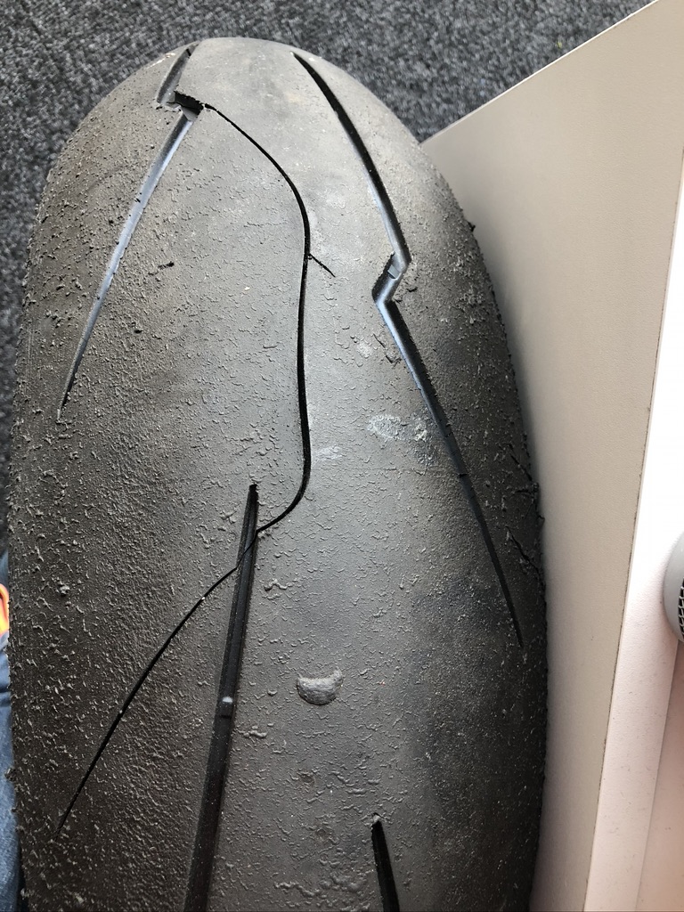 I've had similar on a Pirelli rear SC2 back in 2019 at Aragon. Had only done about 5 laps, so hadn't gone too far. Took about 4 months, but got a full refund by Oponeo. Photo's included.