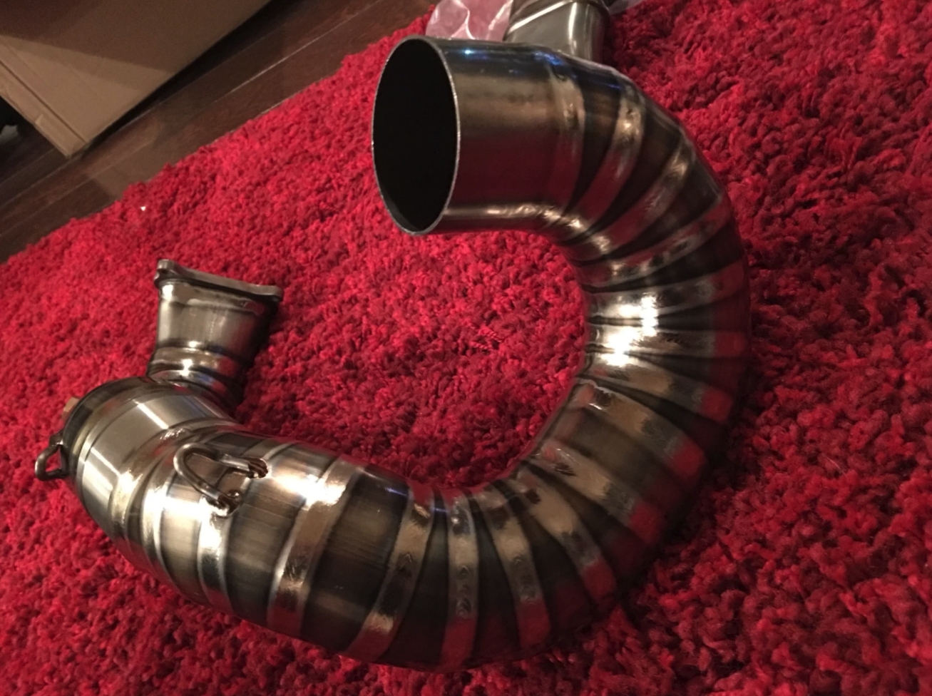 I’m sure belly pan will look proper. My Redline system arrives today!! Im staing home And looking out for postman. In my opinion Awstin pipes looks to heavy and dis proportional. Hopley I’ll be able to resist opening the box by Christmas.