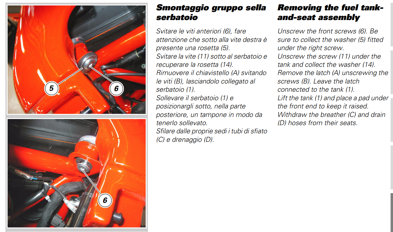 Also have a look at the YouTube video of someone removing the tank - 3:20 for the fasteners at the front of the tank. Also have a look at this YouTube video from 4:40 Hope this helps. I see that you've asked the same question on the Multistrada.net forum which is probably a better place for anything relating to the older air cooled Multistrada.