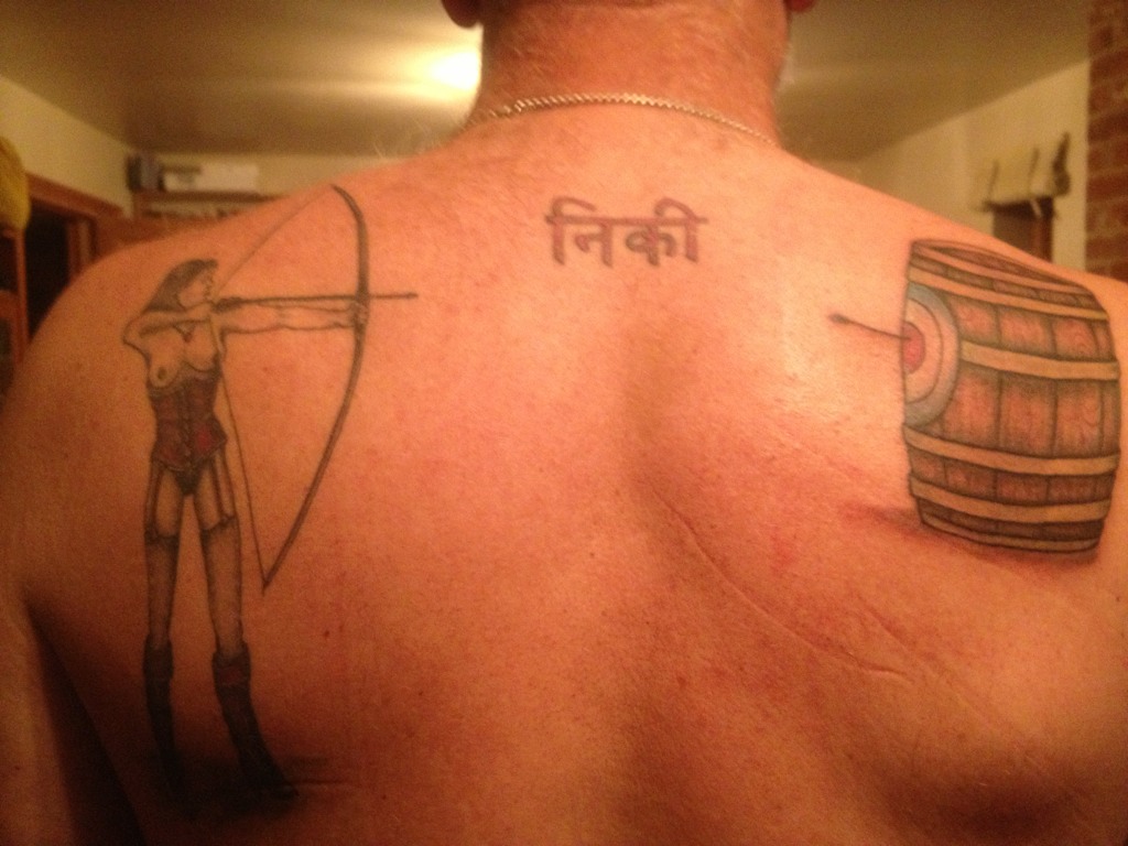 I've got a couple of bits of meaningless tat on my arms but I don't regret any of them because they were all things I wanted at the time and that's what it's all about. My son's got quite a few tattoos including some kind of a half sleeve done and he always says that he has never felt as humiliated as when I wandered over and threatened to deck a tattoo artist who was about to do a piece on his arm when he was pissed up aged 17 at the Rock & Blues festival and I said he had to go back and get it done when he hadn't had a drink. Oddly enough he didn't go back at 9am and the fake Hells Angel gave me dirty looks every time I walked past for the rest of the festival.