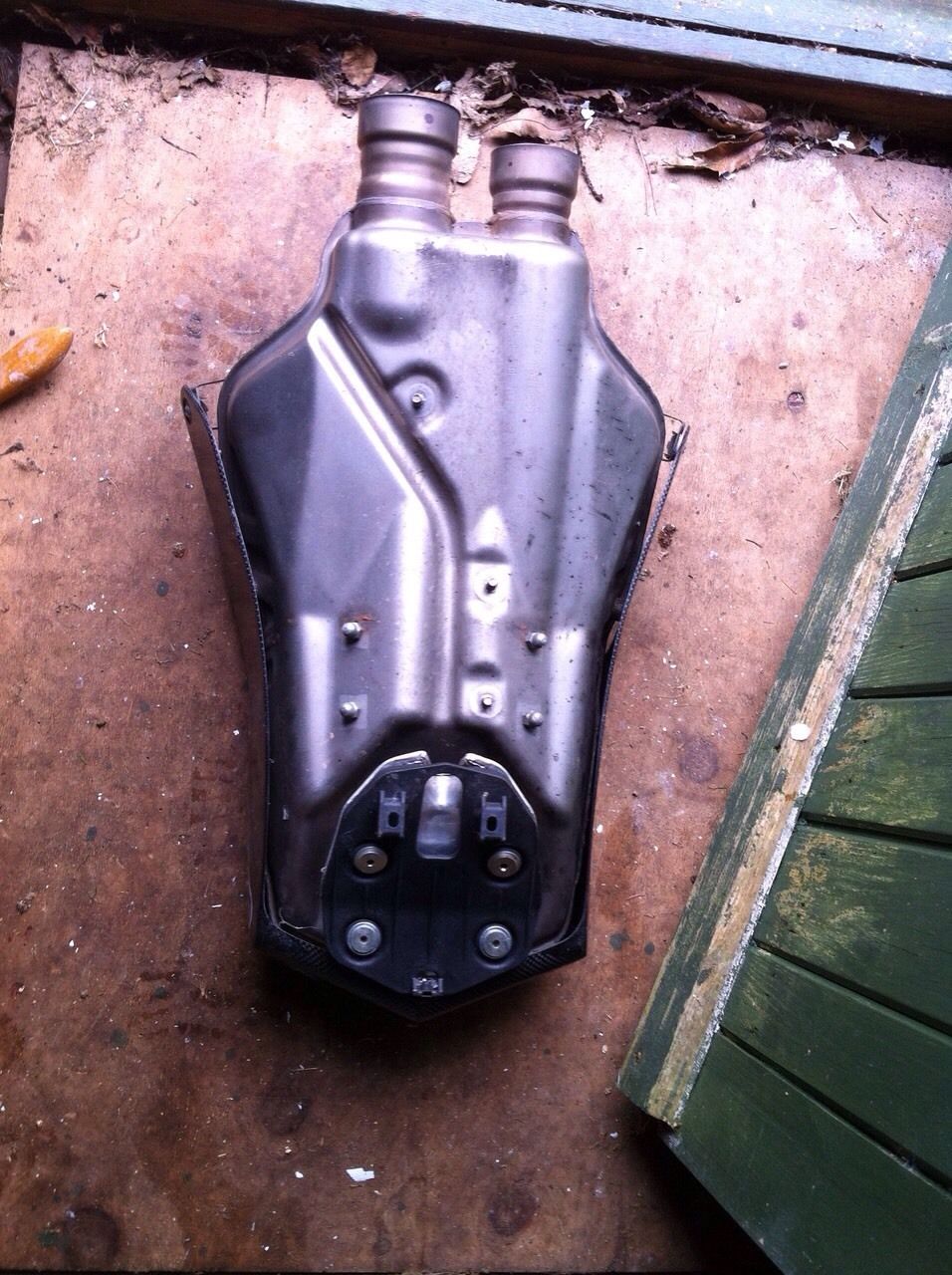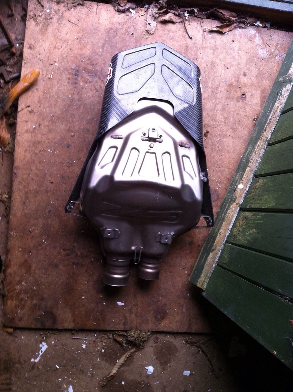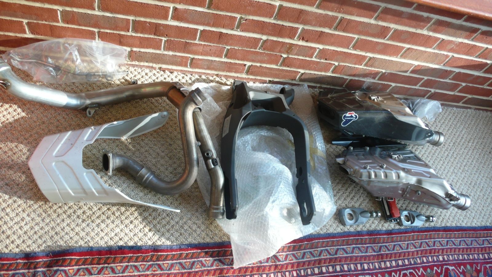 That there is two standard end cans worth about £20 to £30 each. There is no de cat front pipe either so it would be no good even if it was a Termi, which it isn't. No ECU either for the termi. The standard 999R system isn't a 999R system as it is the same as all 999's. Either he is trying to con you or has been conned himself with no one ever realising and telling him...