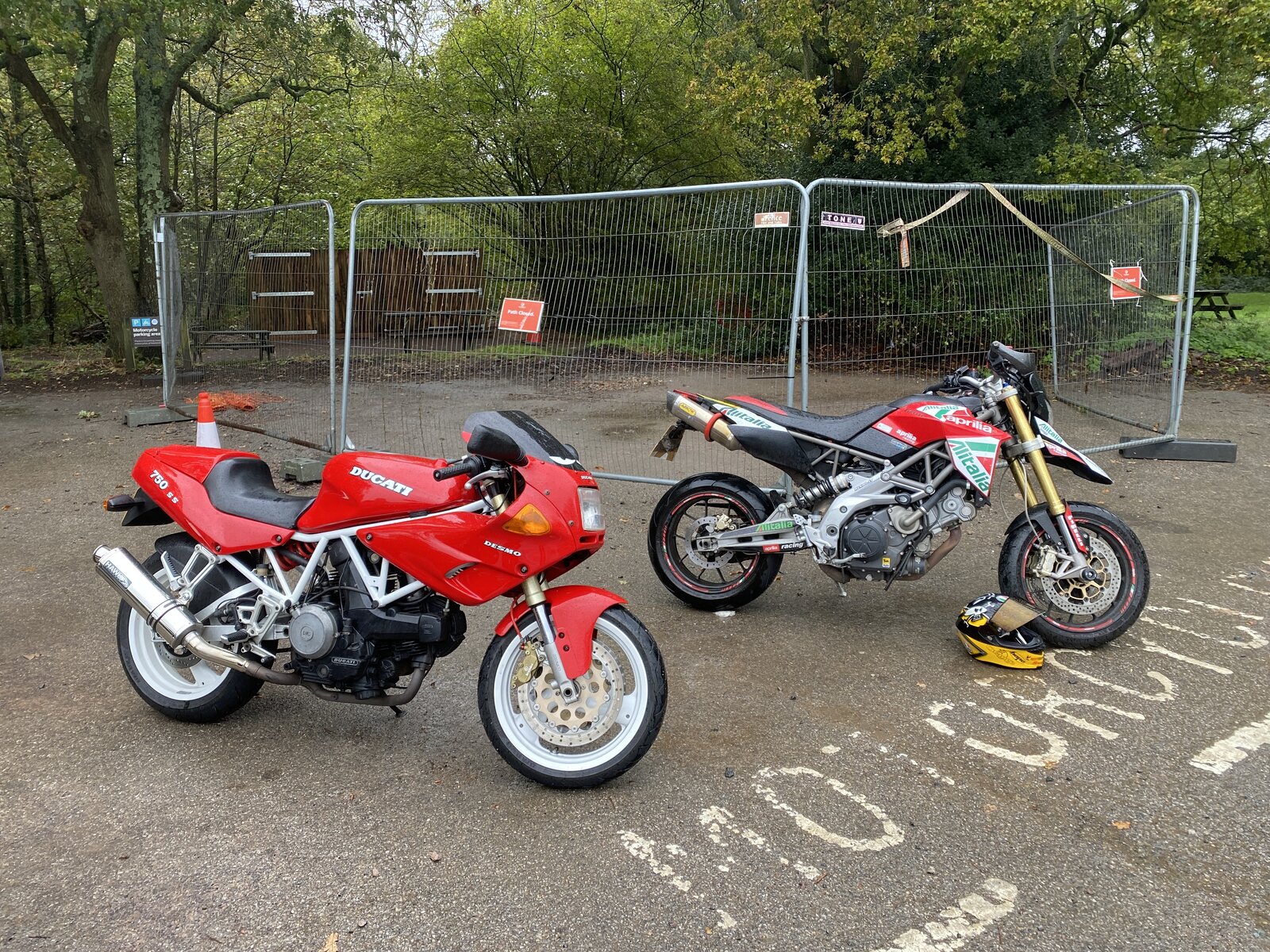 Popped by on way home (for loo) after a well needed blat. Bit empty. Only one old ducati, looked like a darmah in red (square case bevel, I don't know what). Sounded nice tho. There's a helmet shelf in loo!!! Hooray! Nice one Rykers.