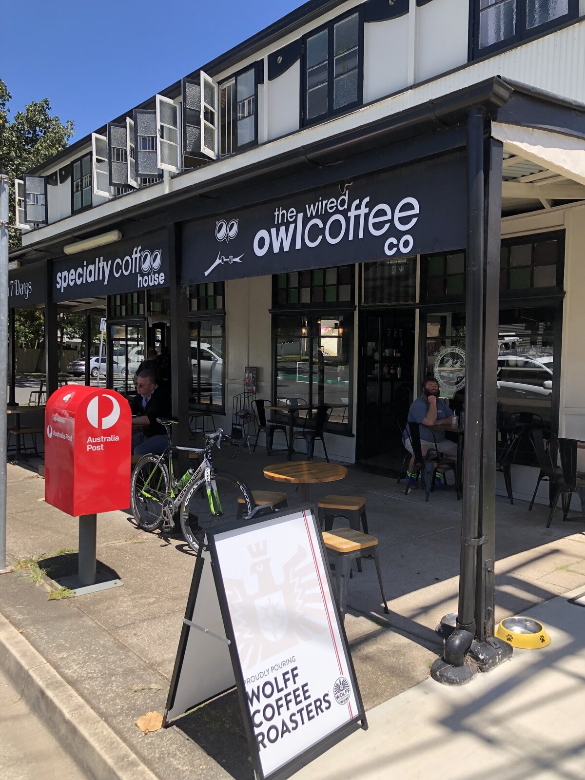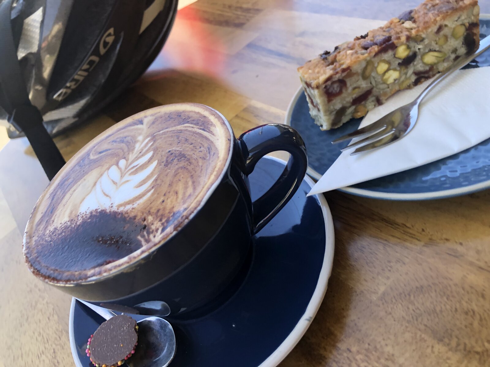 A little ride out to Sandgate on the coast, just a wee 42 miler today.. Stopped at the Jim Soorley bridge ( 3 miles long that bugger is ! ) I normally cross it on my way to Woody point / Scarborough, but today I hung a right and headed down to Sandgate. Notice that the tide is well out and there’s a fair bit of cloud cover… Beach doesn’t look so pretty when the tides out, a bit muddy looking Then down to Shorncliffe pier, I normally ride to the headland in middle of pic, but today……. I just couldn’t be arsed ! Discovered a new coffee shop in Sandgate, the “ Wired Owl” great name for it. Plenty of yum things to choose from I opted for a large extra hot Cappuccino ( you have to ask for your coffee extra hot over here, otherwise it’s bloody tepid! ) and the pistachio and coconut slice, …very nice it was A lot cooler today than my last ride @Nelson …in fact it was a chilly 24 c when I set off, almost wished I’d put a base layer on , soon warmed up once the old “ currant bun” got higher in the sky though, just a nice temperature for riding today Laters people