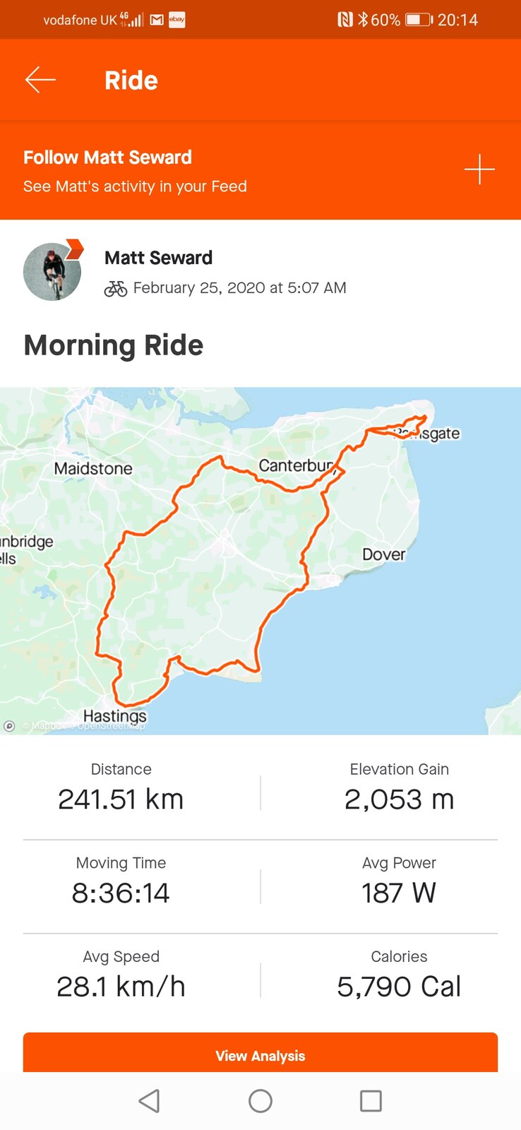 I really enjoyed today's ride, just took my time and enjoyed it . I had become a little strava obsessed , got my first KOM and a fair few top fives over the past couple of weeks . But you can't ride at that speed for the whole ride, and someone will beat it anyway . So just chill and enjoy .