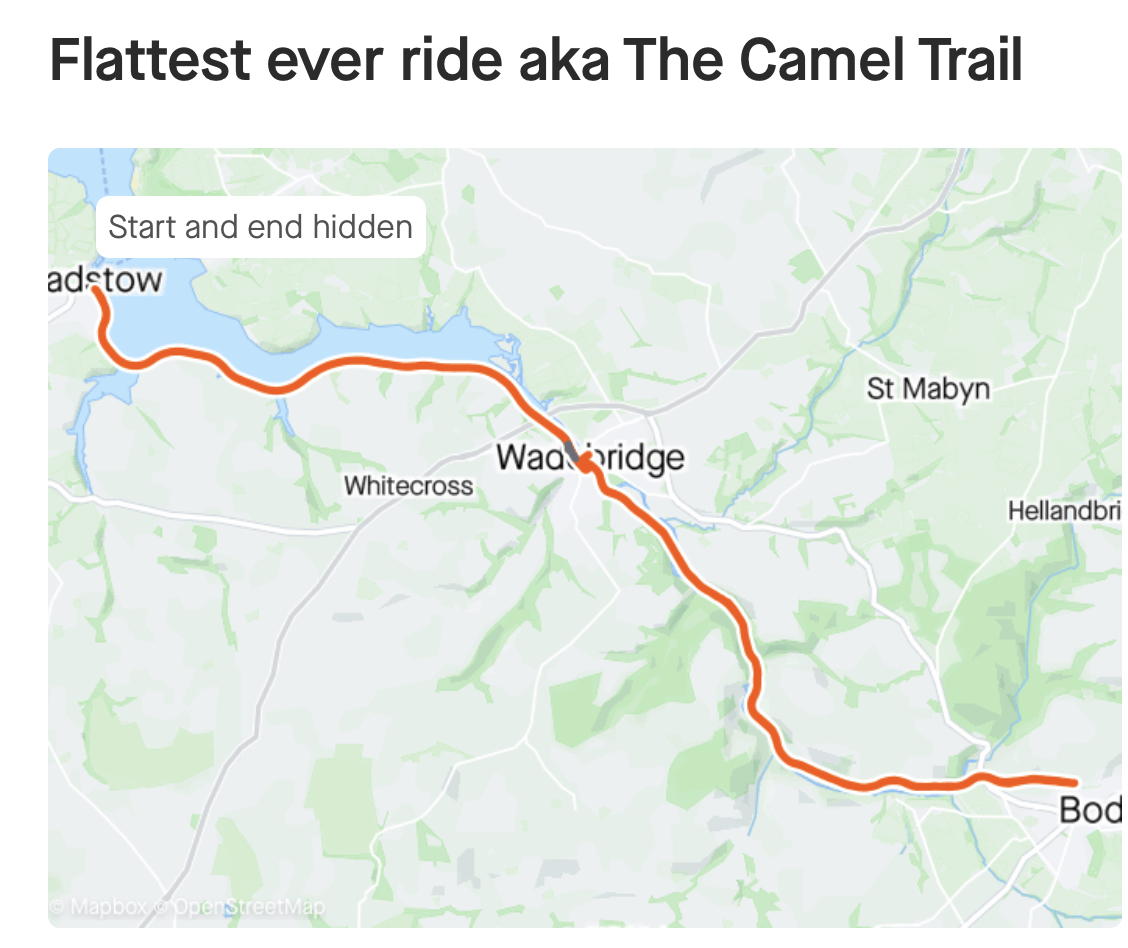 Third time lucky completing The Camel Trail. Very nice, mainly traffic free, former railway bed, max of asphalt and hard pack material. Would do it again if part of a longer ride, but this was a family outing so bimbling was mandatory. Anyway a fantastic facility, lucky locals.