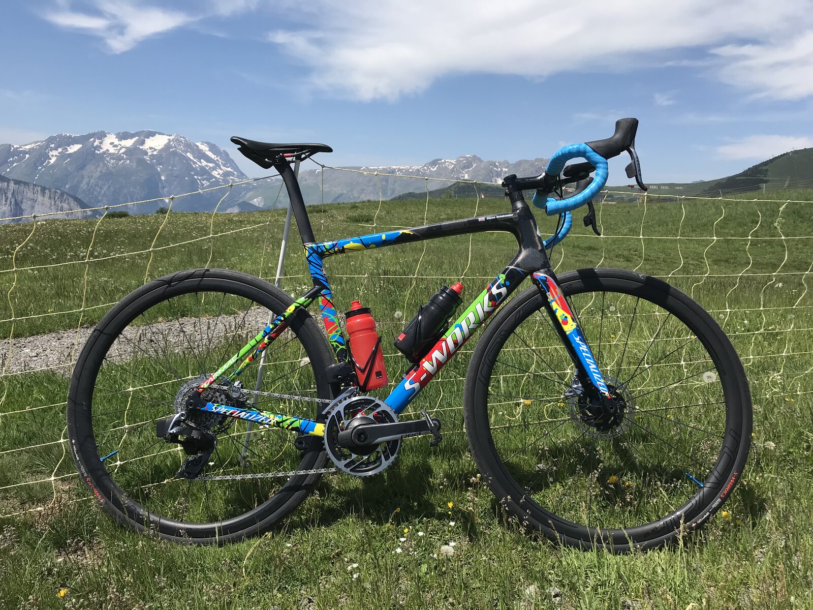Not tubs, they’re Specialized S-Works tubeless which it came with. I’m using the Pirelli Centurano tubeless on all my road bikes now though as they seem to last better and I’ve never had any problems seating them. The Marmotte route (we didn’t do the official event) was excellent, the worse bit for me was the main road from the Galibier to the Alpe, busy week day full of trucks and cars. Raid Pyrenees in August this year as long as this shit is ‘under control’ by then, its already screwed up my Liege-Bastogne-Liege in April and Chase The Sun in June.