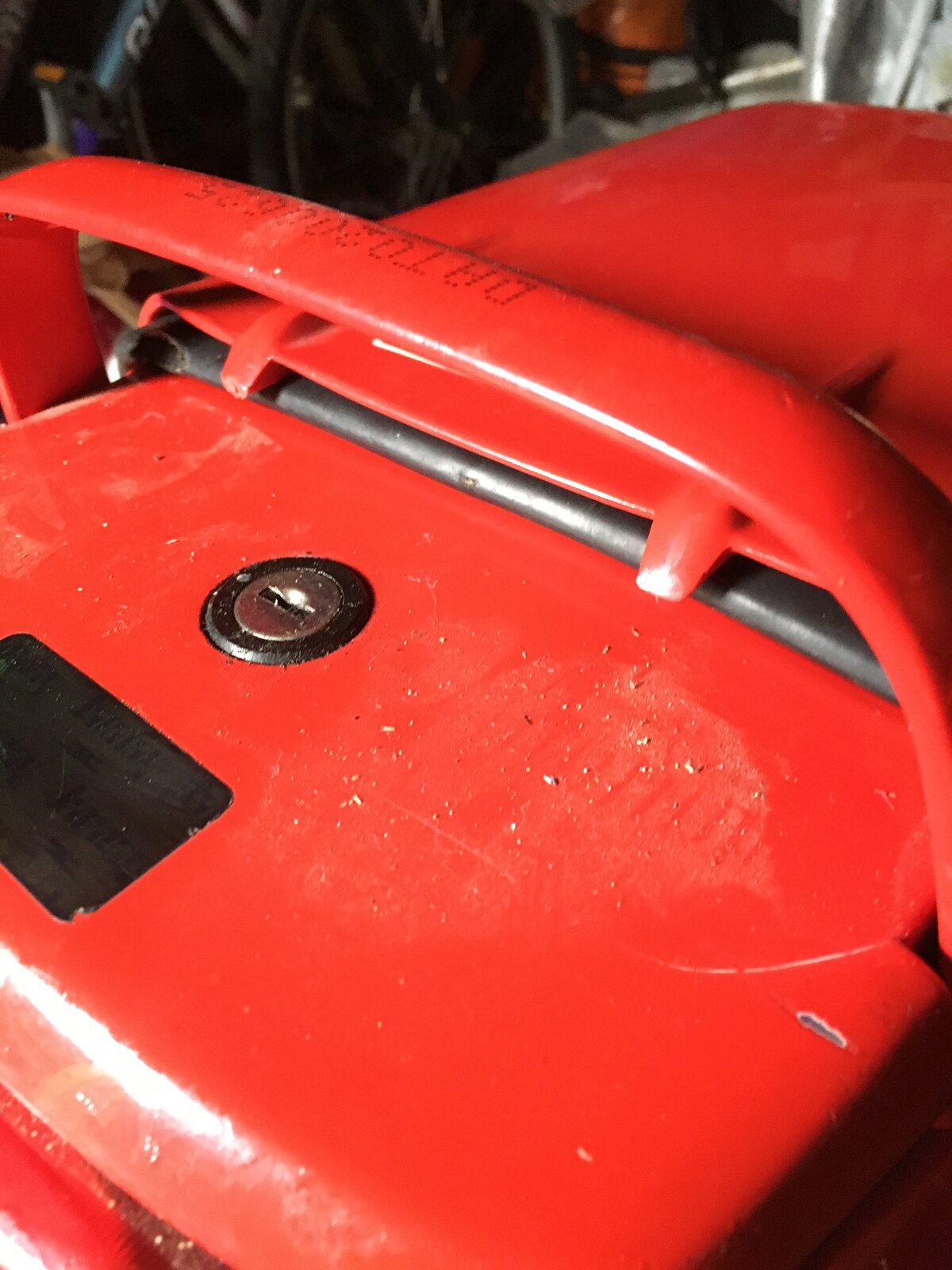 Seat has the loop type lock like my old two, the seat has a date of 10/97. I’ll modify this seat, Dremel make a plastic cutting disc that are very good, any one used them?