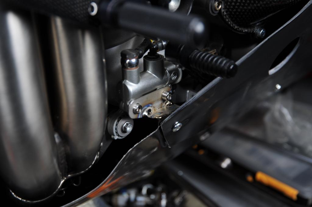 Cheers! The dash is pretty basic, but then that is reflected in the price. The quality is very high though. I think I have come to terms with the fairing. Having spent most of yesterday evening, and this afternoon and evening muscling them to where they want to sit nicely, I am happy. After researching the fit of the original corse fairings, I spotted that they didn't fit the bikes too well either, so I had little chance of getting copy fairings to fit any better. This evening, I made up some brackets to hold the belly pan steady. This also allows the catch tray to stay with the bike if you remove one or both of the side panels. The left hand side uses on of the side stand mounting points, so is a pretty sturdy M10 thread. Seemed like a nice idea to trim the bolt down a bit. And fitted to the bike. Almost ready to paint now.