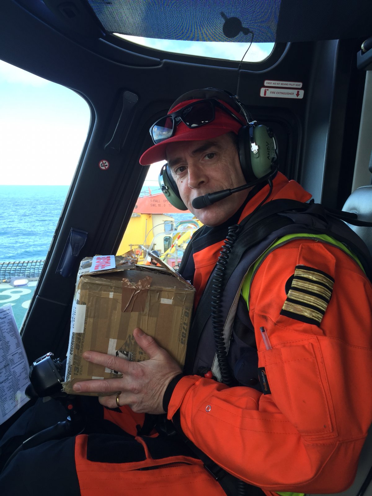 9. At work in the "office". Bizarrely the box contained live tropical fish that the offshore installation manager wanted, to restock the rig's fish tank!