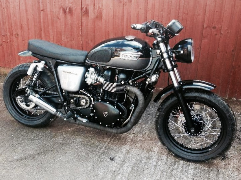I recently built an 'on trend' Bonnie custom along side 'Spirit Of a The Seventies'. The day I picked it up How it looked after I had I finished, although I did lower the front mudguard after this pic. The bike was a new standard T100 Bonnie. The conversion took about 6 months. Parts are cheap and these bikes are easy to work on, as you would expect from and 'old school' style bike. The bike was featured on Bonnification (take a look at there web page, loads of cool Scramblers,Thruxtons,Bonnie's to get some ideas). I basically picked the bike up, stripped it to its frame and re-built the whole thing using upgraded and better quality parts, like gas rear shocks, progressive fork springs, custom made 17in wheels, once off carbon pieces etc etc. Pretty much the only thing standard was the tank lol My bike was the prototype for the latest SOTS 'Barbour Bike' project. I pretty much know these series of bikes inside out. If there is anything you would like to know, I'll be more than happy to help.