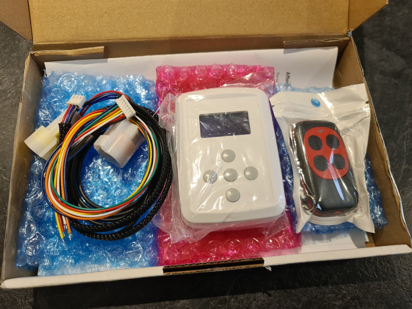 So the first of the main components for my setup arrived today, starting off with my new digital controller. This is manufactured by an individual in Australia and surprisingly only took a week to get here. It's called the "Afterburner" which some of you may possibly have already heard of. It massively extends the functionality of the basic controller panel that you get with most diesel heaters plus it enables control of the heater through Bluetooth, it's own wireless AP or can connect to your own WiFi network, allowing you to control the heater from your mobile device or a laptop or PC. Furthermore if you set up an MQTT broker, you can access and control the heater from anywhere in the world. I plan to integrate it with Node Red, so as I can control it through Alexa as well. The version I bought has the GPIO option which lets me connect the controller to two digital outputs and two digital inputs, for example I can use the run status of the heater to switch on/off a fan, or monitor and alert me about the diesel tank level or reset the fuel gauge remotely, when I refill the tank outside plus a whole lot more. The manual that comes with it is very comprehensive and there is an active Facebook group that is full of great information and tips to get the best out of the unit. I won't delve any further into just how much this controller can do at this stage, but rest assured it is a very clever piece of kit.