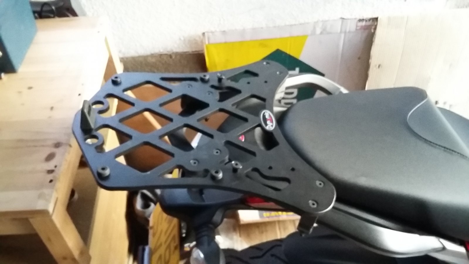 Nuttmuttss the issue for me is weight of what can be carried looking at the Ducati/Givi rack and the hepco/becker rack both have tubed supports that bolt into the subframe under the pillion seat and grab rail (two underside set screw holes)- so could weight distribution could be an issue and grab rail strength with the SW motech rack ?