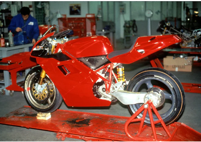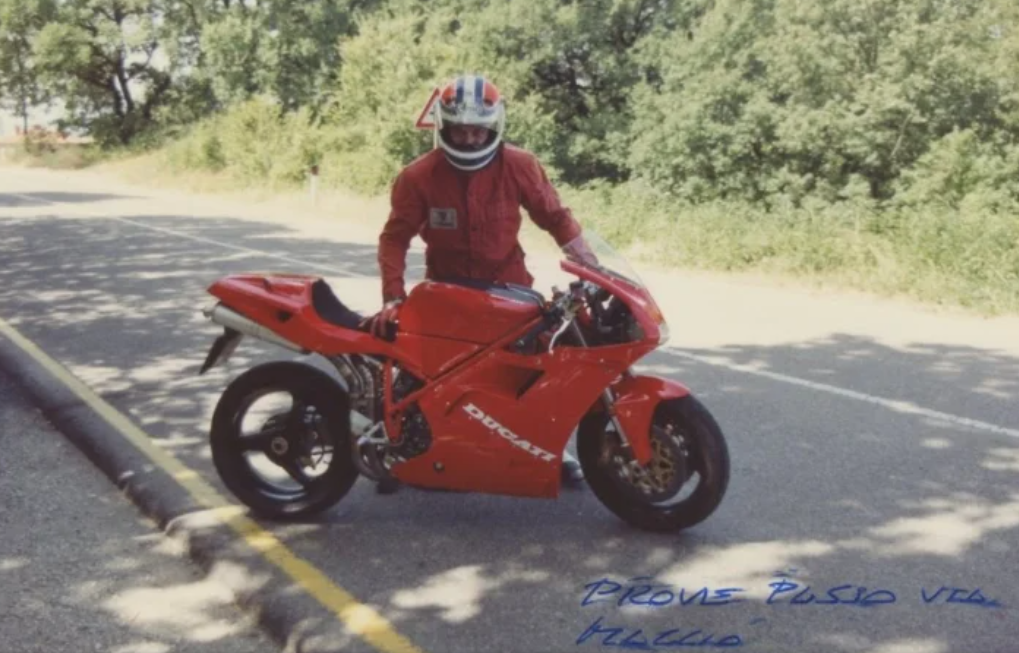 Well, here's Tamburini's personal 1993 916 as pictured in the museum: As well as prototypes from late '92... And Tamburini himself ripping around Rimini backroads circa '93...