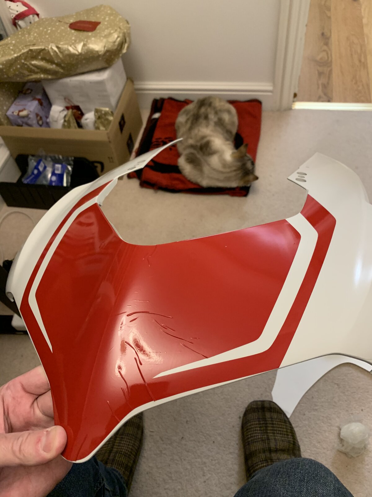 3. It doesn't look like you've got the RHS (looking from the front) positioned central to the nose centre line and may not have worked outwards from the nose crown, hence the slack and creasing. It is quite difficult to be sure, so maybe use some gentle hair-drier heat to gently pull it away and if you can, attach the vinyl to some greaseproof as you remove it, so as to reduce the likelihood of attracting 'foreign bodies'. That will then give you a better chance of re-attaching the same vinyl panel. If you still have the backing material then even better. You could also try some gentle heat as you re-fit the panel. Don't ask me how I know how this works........:cold_sweat: