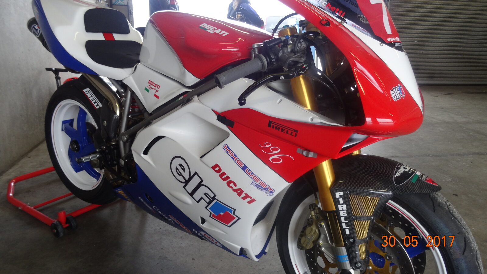 18. I have a mint 996 parade bike, built by Mike West Racing, Pertemps ( Later re badged to Elf) Ducati 996 that was built for Dario Marchetti to ride with Francesco Chili, David Tardozzi, Marco Lucchinelli etc at the Festival of a 1000 Bikes 2014.. Has a V5...