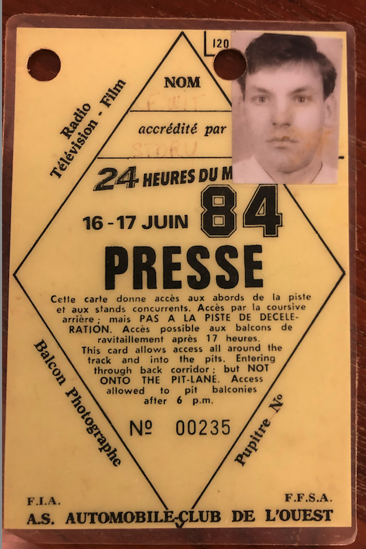 Watching old photographs on my Mac, Lots of memories . Le Mans 24H 1984. I was a 23 year old photographer with pit-lane access ... The "Hawaiian Tropics" got everyone's attention then. Porsche 956 doing 246 m/ph - 426 k/ph on the Mulsanne Straight during Practice/Qualifying There were NO limits then, just like Rally group B cars, these were the group "C" cars.. "prototypes " When I think of it now, Crazy! even found my old press card.