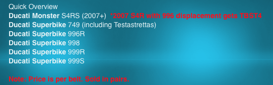 My My last set did a good 5 years and still looked perfect when they came out. Gates belts for a 916 are, I believe a reasonable price. Oem for a 999 are £142.00...