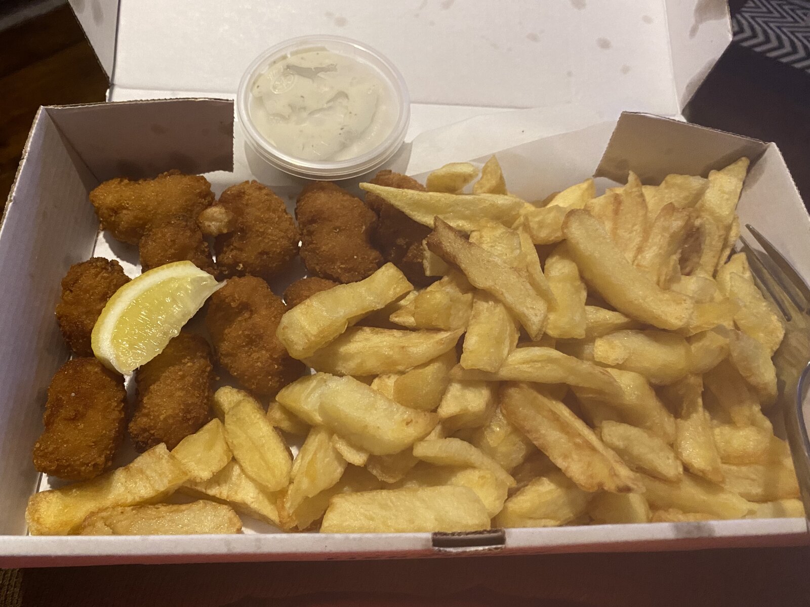 Waitrose bubbly haddock, beef dripping chips, coleslaw and a bread roll with butter. A sort of healthy alternative to a takeaway!