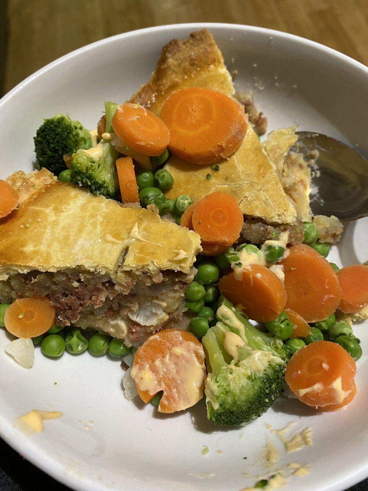 Turkey (it’s ma-hoosive) pigs in blankets, mashed carrot & swede, roast potatoes & broccoli cheese, stuffing balls and gravy. Pics will follow after 6 p.m. An appetising starter pic