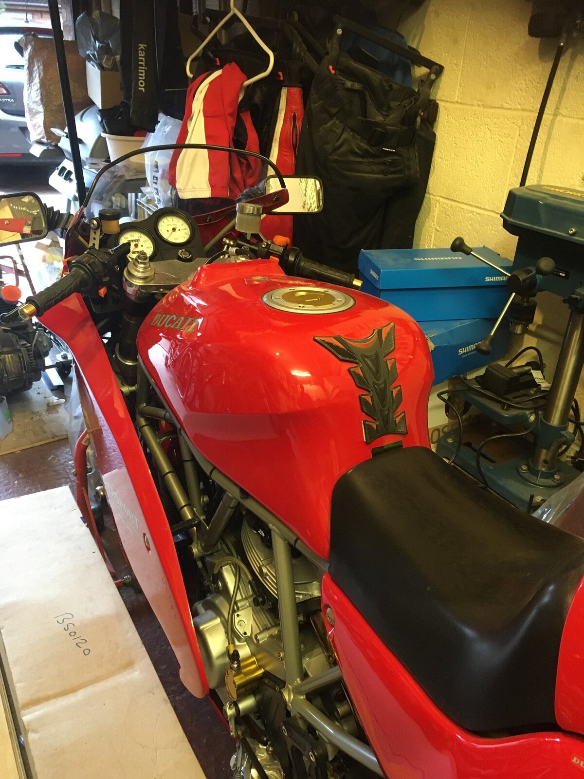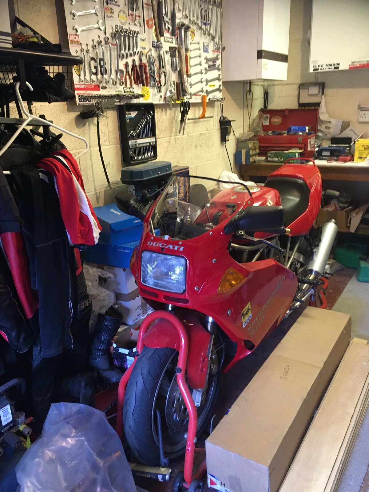 10 out of 10 for that tool wallboard & stickers,....i guessing but perhaps a 94 / 95 900ss model and you've owned it for 26 years plus.?