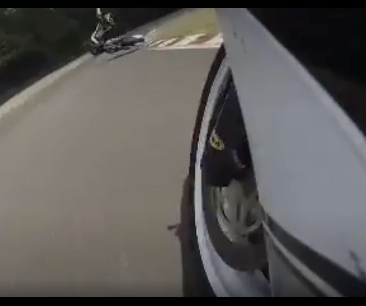 His bike wasn't two badly damaged apparently, just the right hand titanium exhaust folded up . I don't know if he raced.