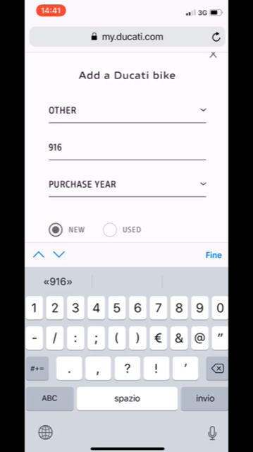 Add Bikes Owned: Ducati > Family: Other > Model: 916 > Year: select year