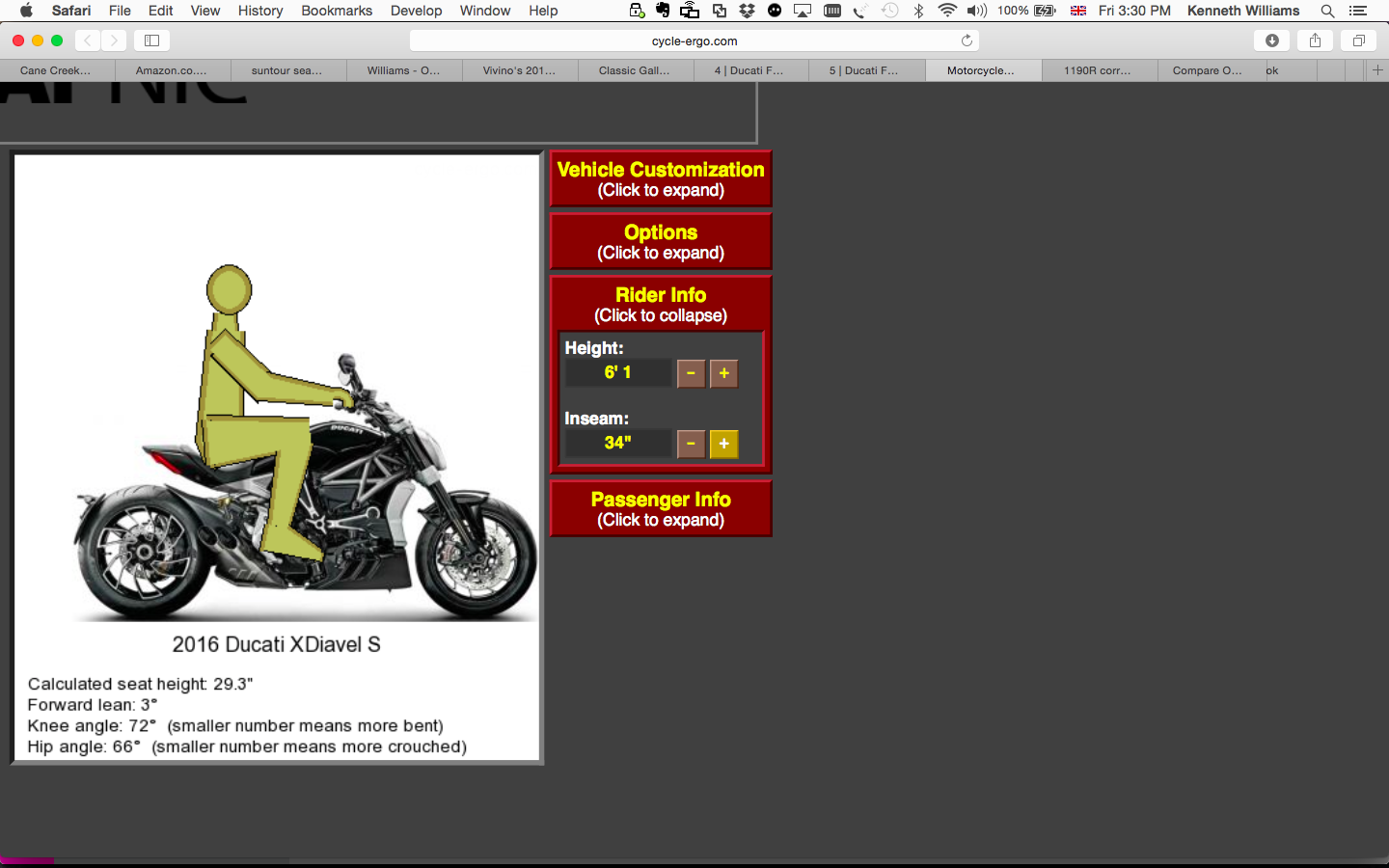 5. I'm not where I can, only have an iPad till later. But you can it's easy. Just go to that link at bottom of the post (click on cycle ergo). Then click add bike, pick Ducati, then x, then under options change it up to suit you. Love that tool.