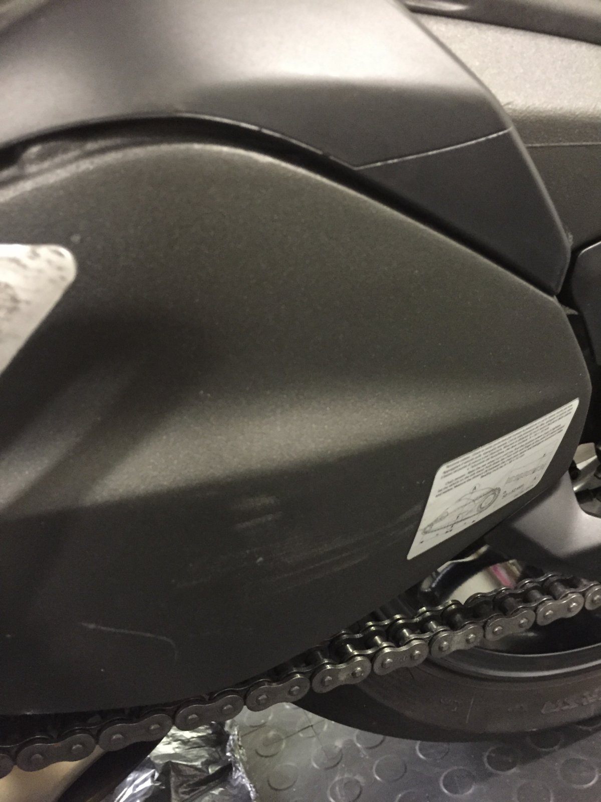 It doesn't really have a frame obviously but the headstock was twisted a bit and the bars hit the tank. It was hit from the left by a car and ended up on the right hand side.